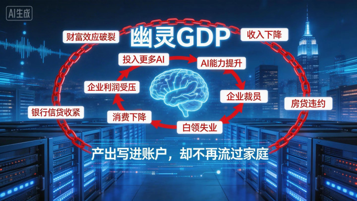 这是敷陈建议的中枢宗旨——“鬼魂GDP”:产出写进国民账户,却不再流过家庭部门。北达科他州的一个GPU集群,不错替代曼哈顿中城一万名白领的产出,却不会在周末买车、度假、在餐厅点酒。