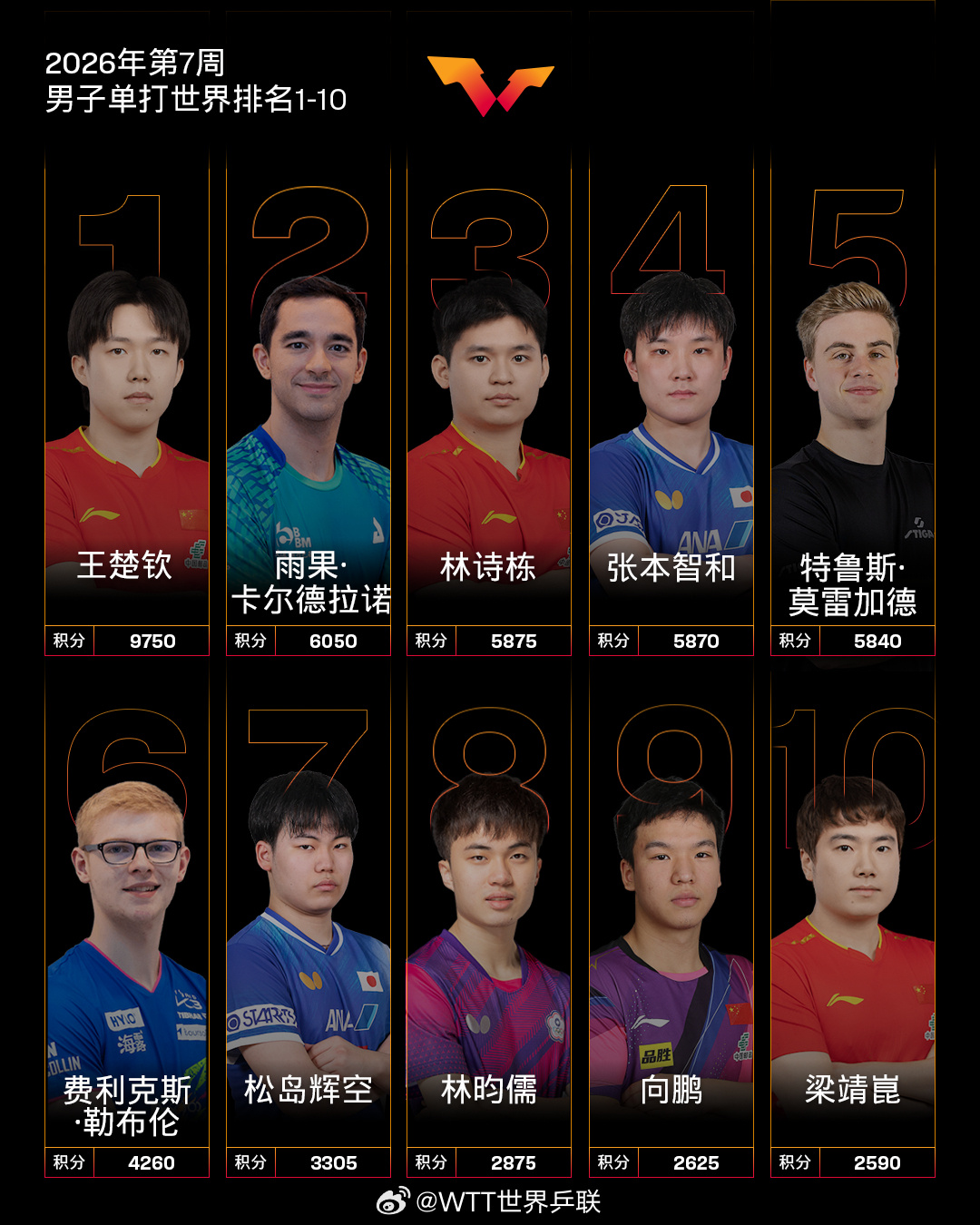 【外洋乒联2026年第7周宇宙排名】