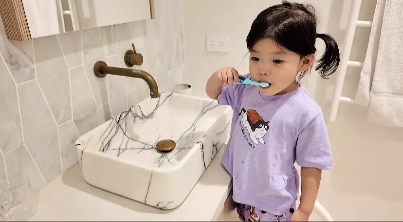 小胖豆超越可儿,有点微卷的头发、肉嘟嘟的脸蛋很招东谈主心爱。她还是不错我方洗漱了,睡前还不错我方喝奶粉。