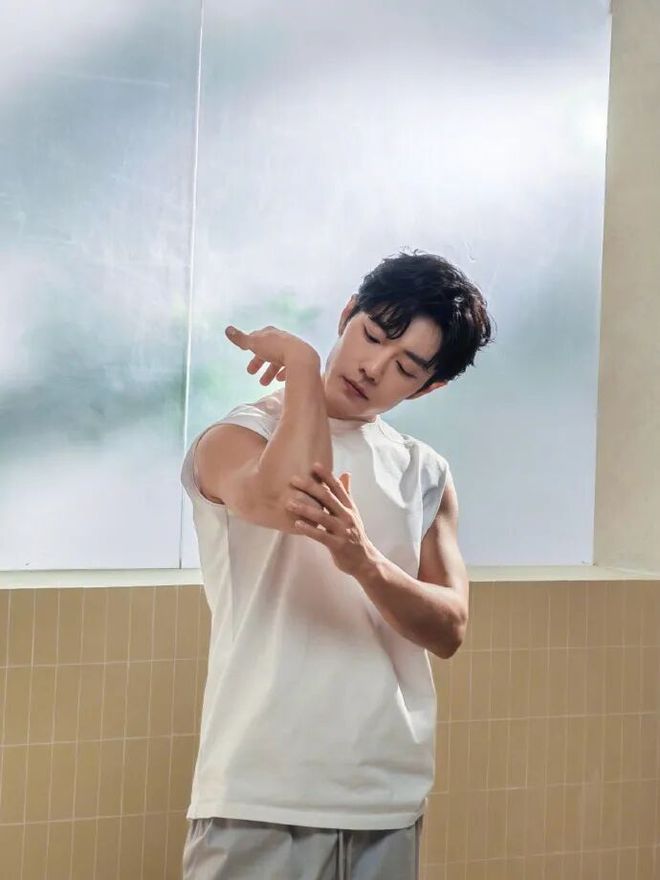 最绝的是生图里那种不加修饰的原生质感。暖调柔光打在他身上,连发丝皆泛着善良的光辉,十足不需要磨皮滤镜来充数。有网友说这组图“每一帧皆像经心构图的电影截图”,如实,苟且的现象里藏着不经意的帅气,抬手整理衣领时手臂肌肉的线条感,
